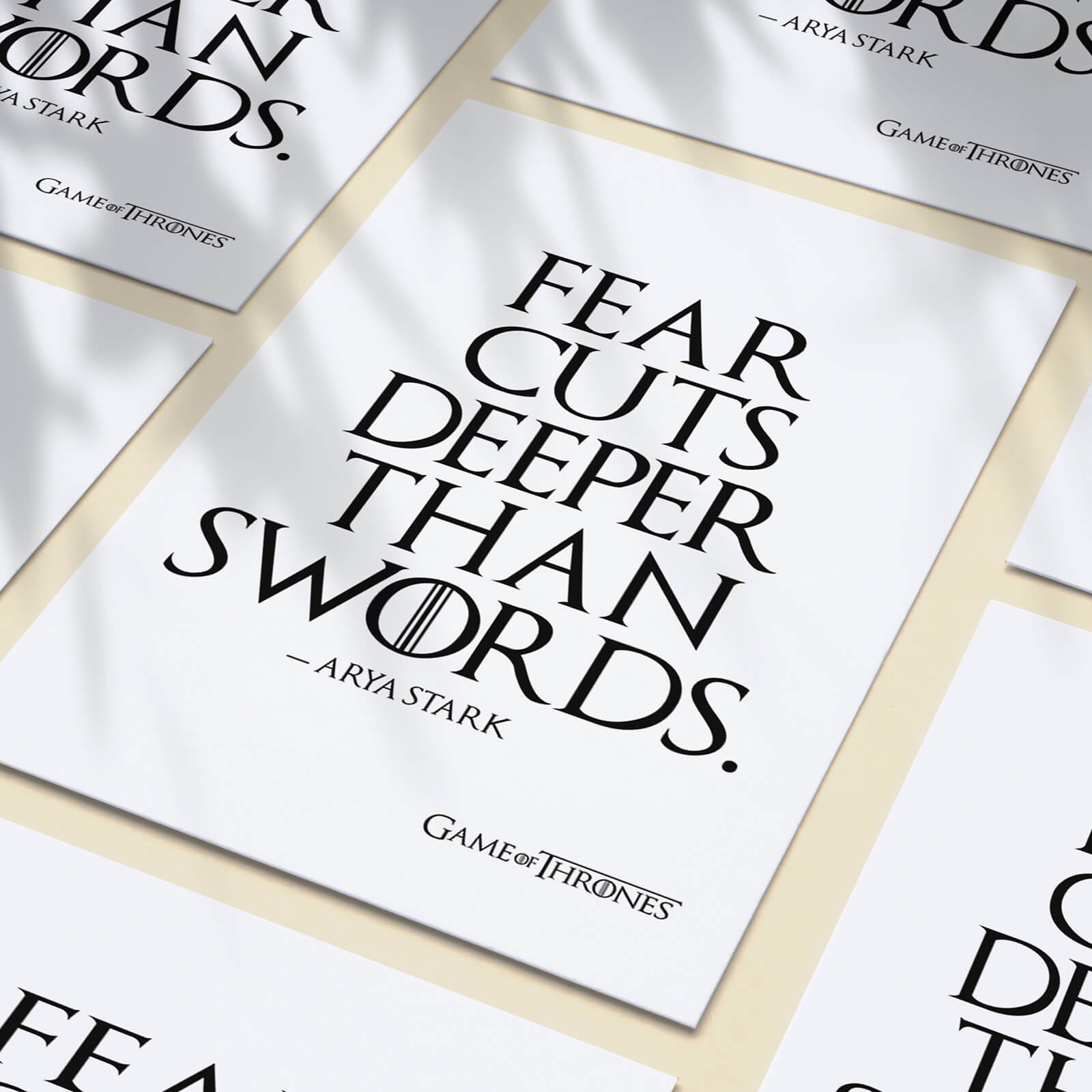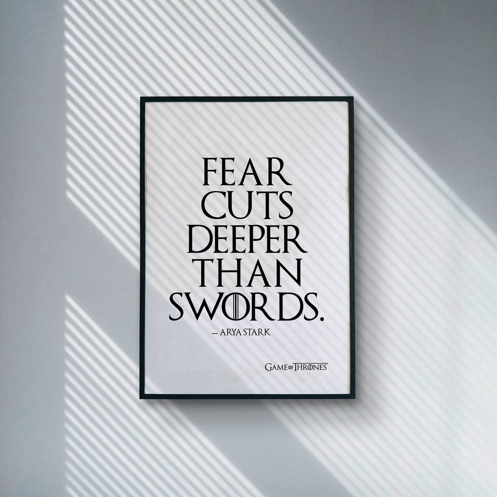 Part of our Typography and Game of Thrones Collection this poster is inspired by an iconic quote from Game of Thrones spoken by Arya Stark. "Fear Cuts Deeper Than Swords".