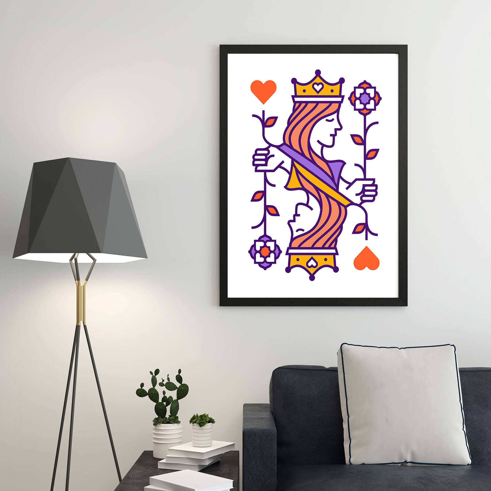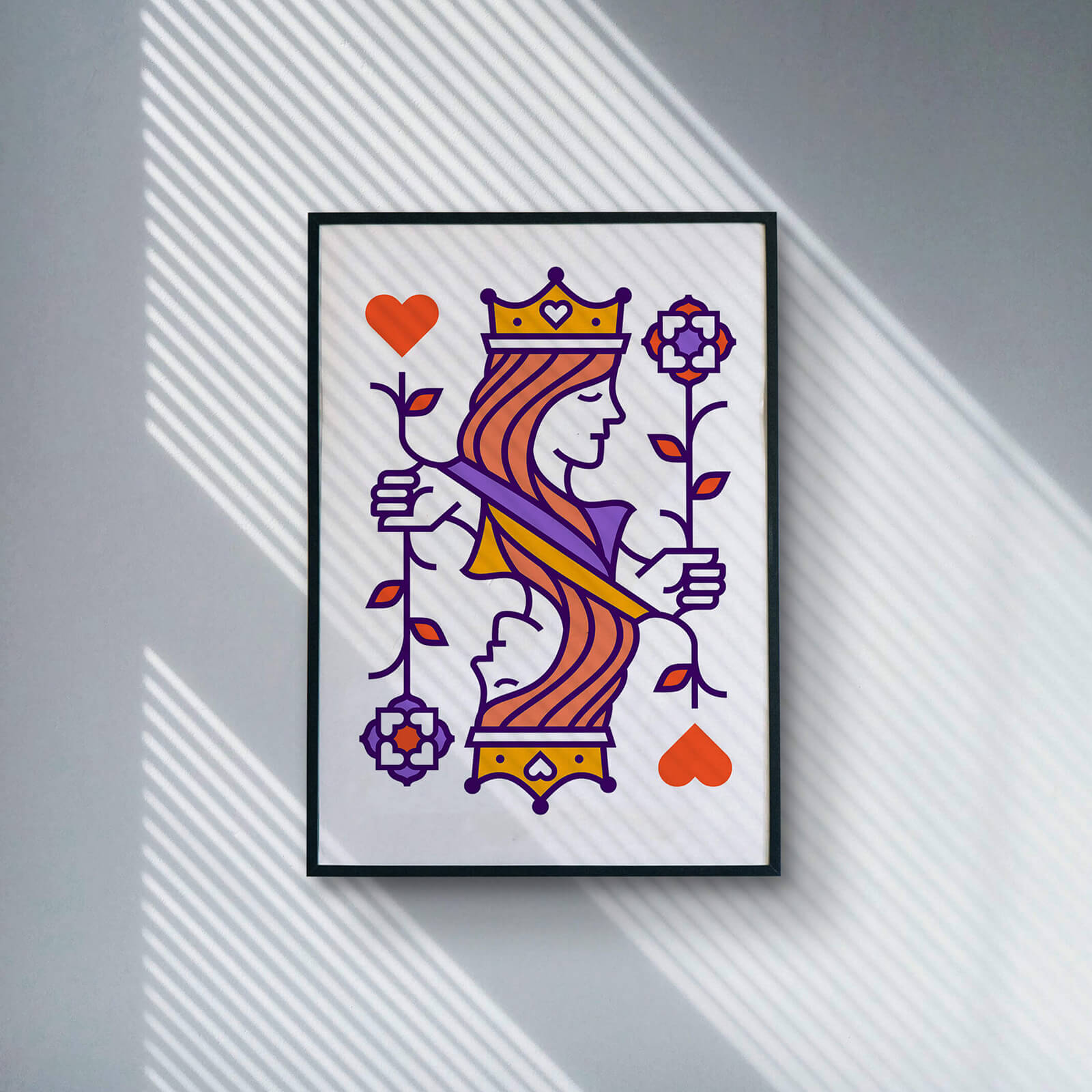 Behold the enchanting allure of our Queen of Hearts Poster – a captivating homage to the iconic playing card that radiates elegance, passion, and a touch of whimsical royalty. This stunning piece of art is a celebration of the Queen of Hearts, bringing her regal presence into your space with undeniable grace and charm.